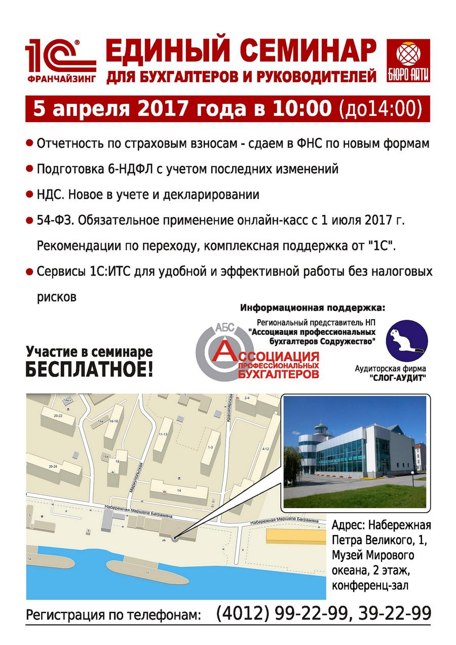 5 апреля при поддержке НП "Ассоциация Профессиональных Бухгалтеров Содружество" пройдёт единый семинар для бухгалтеров и руководителей